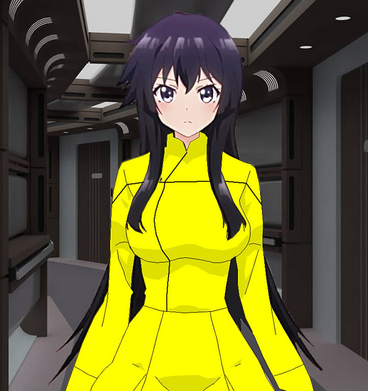 | Physical Description | Karen sports a rather athletic figure with fairly developed thighs. Normally, she has just the right balance of muscle and body mass. However, as she is currently pregnant, this balance has naturally been thrown off. Despite growing up in Hawaii, Karen has fair skin. though she doesn't allow it to bother her. Ever since settling on Schumacher III, which has a far more temperate climate compared to Hawaii's tropical climate, Karen has become more accepting of her condition. Karen has silky black lower back length hair with two chest length bangs in the front. |